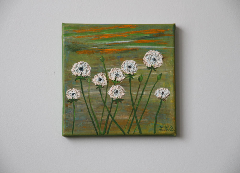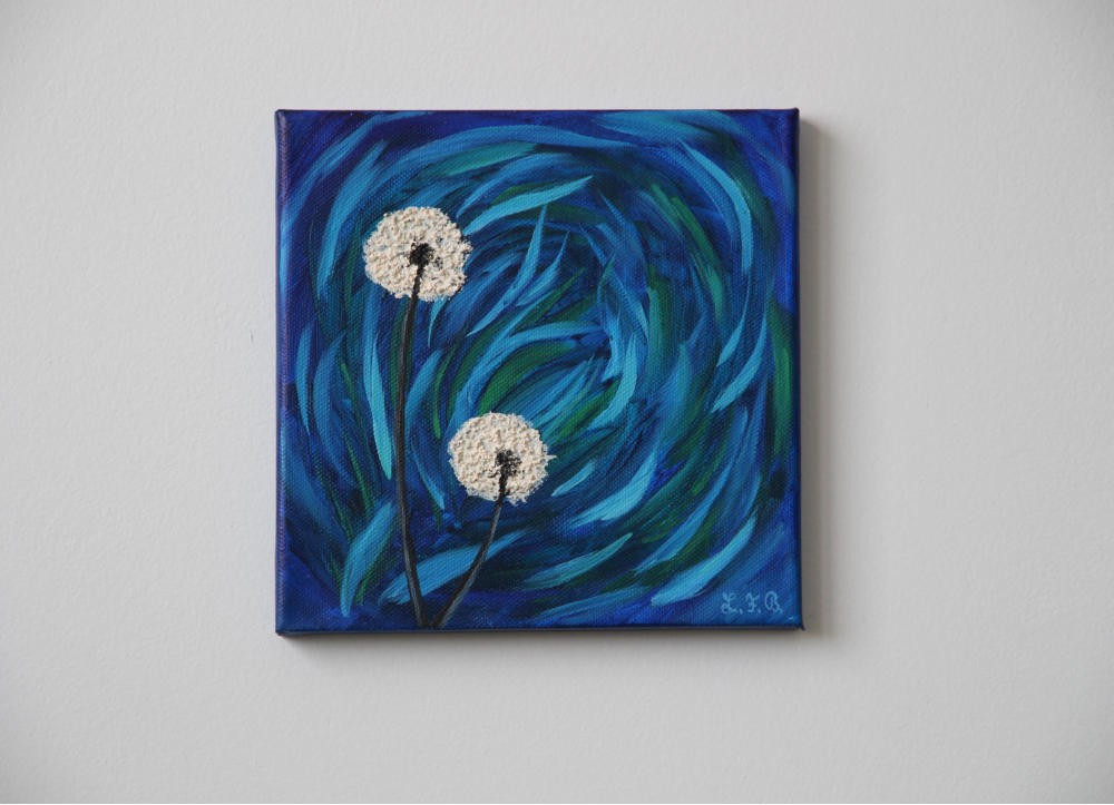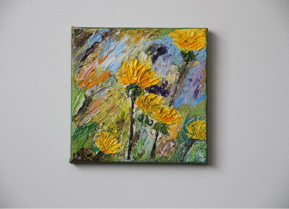 Olejomalba, strukturovací pasta, plátno 20x20cm, obrázek již svého majitele našel